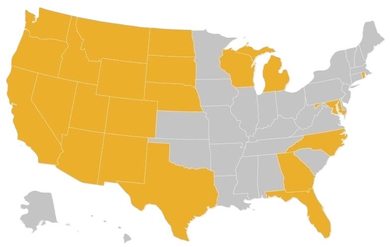 Arizona, California, Colorado, Florida, Georgia, Idaho, Maryland, Michigan, Montana, Nebraska, nevada, New Mexico, North Carolina,
